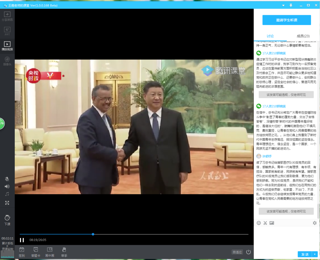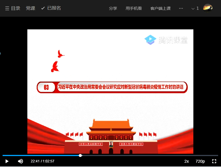 [经管学院 讯]为深入学习贯彻习近平总书记关于疫情防控工作的重要讲话和指示批示精神,在疫情防控工作中进一步发挥基层党组织战斗堡垒作用和党员先锋模范作用。根据学院党委工作安排,3月25日下午,太阳集团tyc4633人力资源管理专业学生党支部代理书记王嘉通过腾讯课堂平台,开展了以“习近平指挥战‘疫’进行时”为主题的线上党课教育活动。本支部全体党员参与了活动。